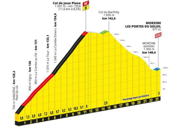 2020年的第15站,Tadej Pogacar 在這裡擊敗當時的黃衫Primoz Roglic ,也拿下環法的第二個單站勝利。再一次擊潰Roglic就是第20站的美少女高地登山計時賽。Pogacar對於此地應該有深刻的記憶,也知道如何贏在上坡。
