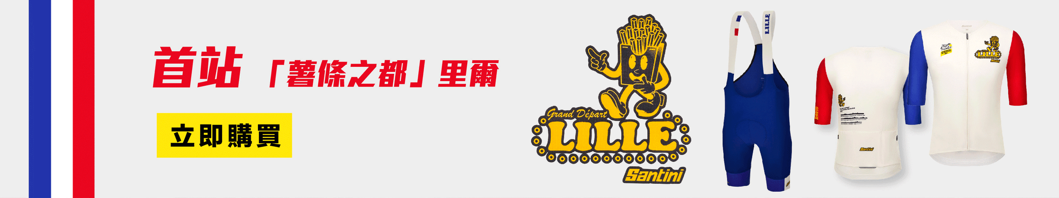 同時為了向這座美食與單車精神並存的城市致敬,Santini 特別推出限量-薯條衫!紅白藍的法國配色,搭配趣味設計細節,將美味與競速精神完美融合,獻給熱愛公路的你。