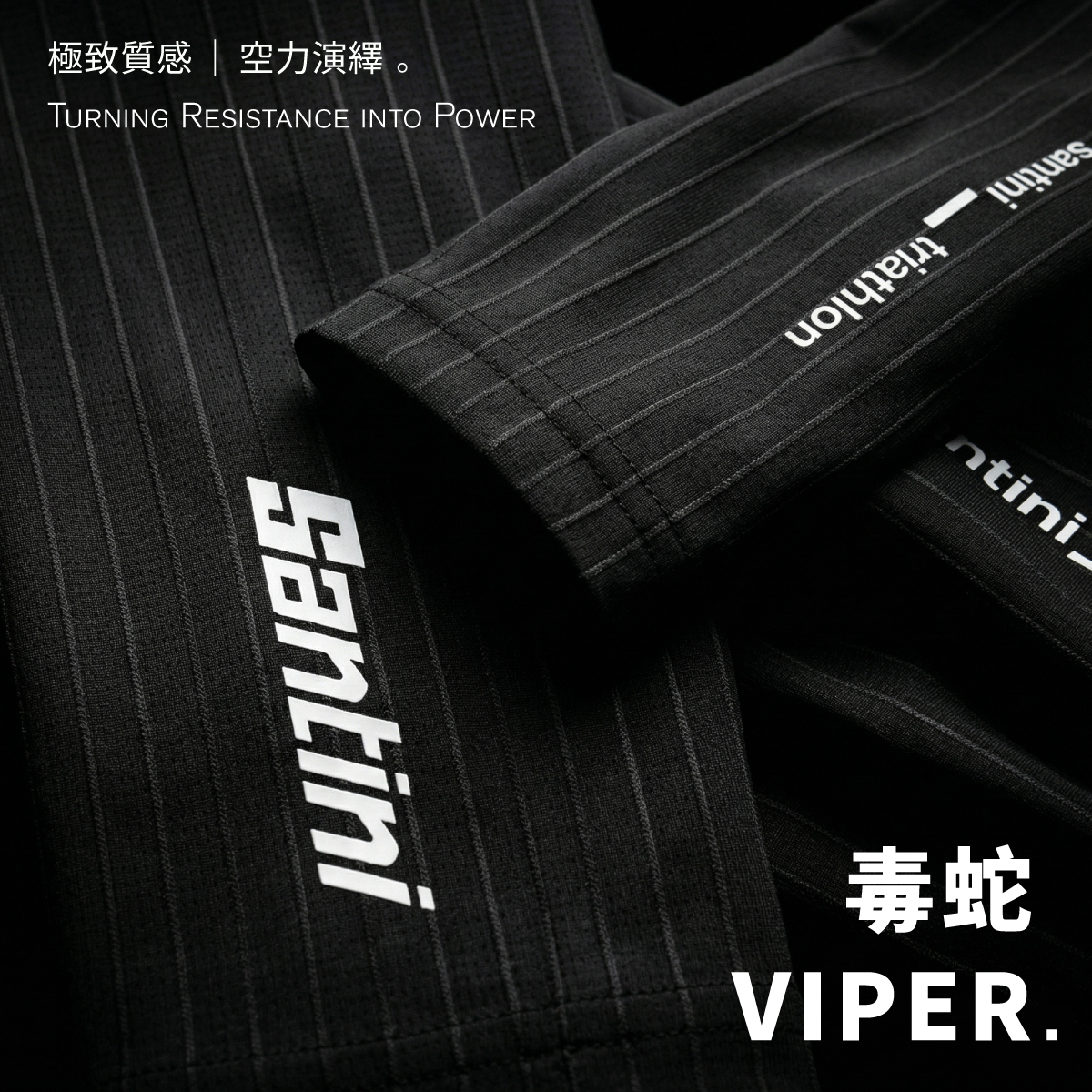 Santini 三鐵空力配件 系列 採用的特殊「垂直肋狀織物」,其設計原理並非減少接觸,而是「主動控制氣流」: