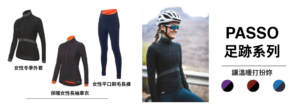 極為合身舒適與美形。 為女性量身定制的冬季保暖系列。足跡系列長袖車衣採用「熔岩效果」保暖刷毛來對抗寒冷,看似黑色面料在彎曲時會露出底部色調,讓黑色不再單調。適合15-20度的氣溫,更冷的時候可以搭配足跡系列外套,Wndstopper®防風抗水保暖外套。全系列可搭配SFIDA挑戰女性平口刷毛保暖長褲。