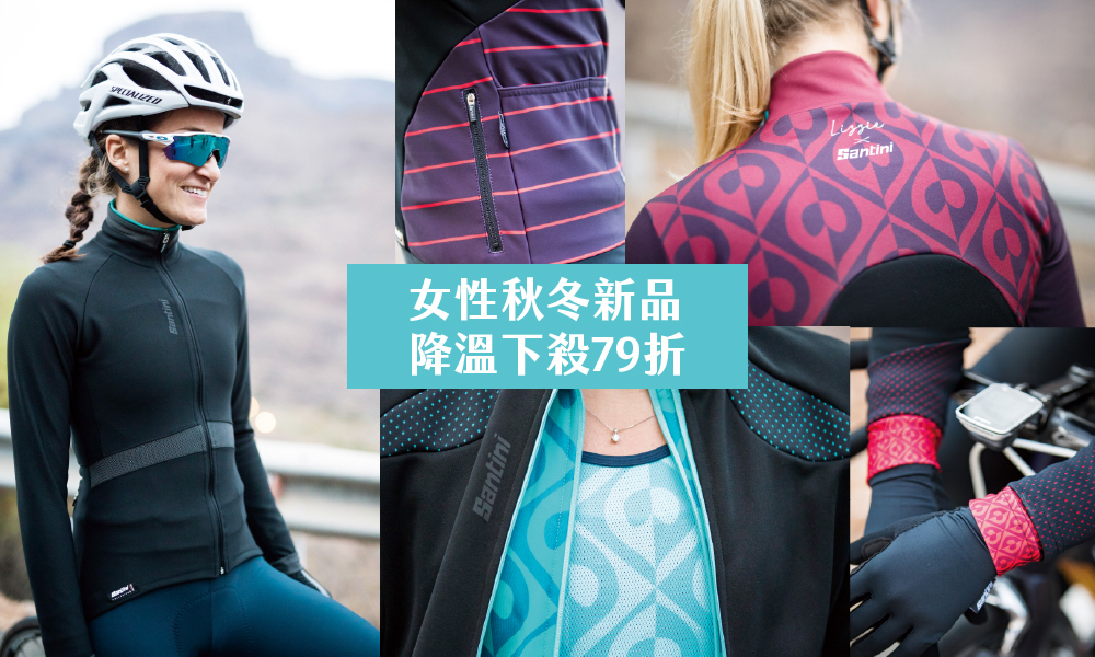 世界冠軍 Lizzie Deignan 從場地 賽轉到公路賽仍然戰功彪炳,身高168 體重才57 公斤的她,纖細但是騎起車來卻是相當剽悍,本人非常親近和善,常常給予女性騎士啟發性的指導。Santini 2019 年與 Lizzie 聯名合作一系列女性服飾。 讓在車上也能力量與美麗並俱。 Lizzie 秋冬的穿搭建議: 15-20 度的天氣可使用珊瑚女性長袖為基底,溫度更低的嚴寒的天氣可搭配珊瑚冬季外套及保暖吊帶褲,來因應寒冷的外騎氣候。另外,也可以用保暖內衣搭配「足跡」外套,但緊貼合身達到最佳的保暖狀態。
