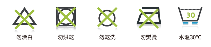 ∎ 請勿乾洗、熨燙和使用漂白劑及柔軟劑。