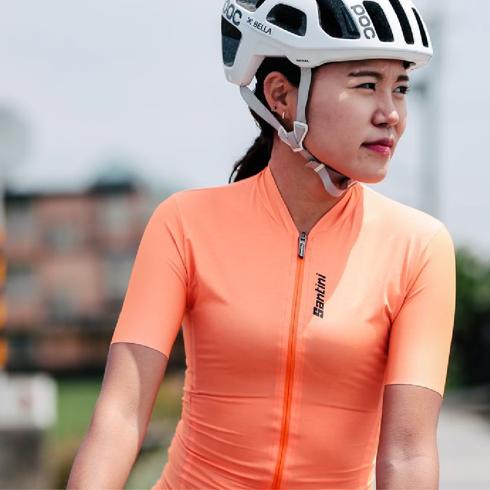 「韻律山東綢」極佳的彈性和柔軟度,使這件車衣得以採用緊身的剪裁,活動時又不受拘束,穿上去就知道它的好。搭配Bodyfit無痕袖,穿起來俐落又不單調。