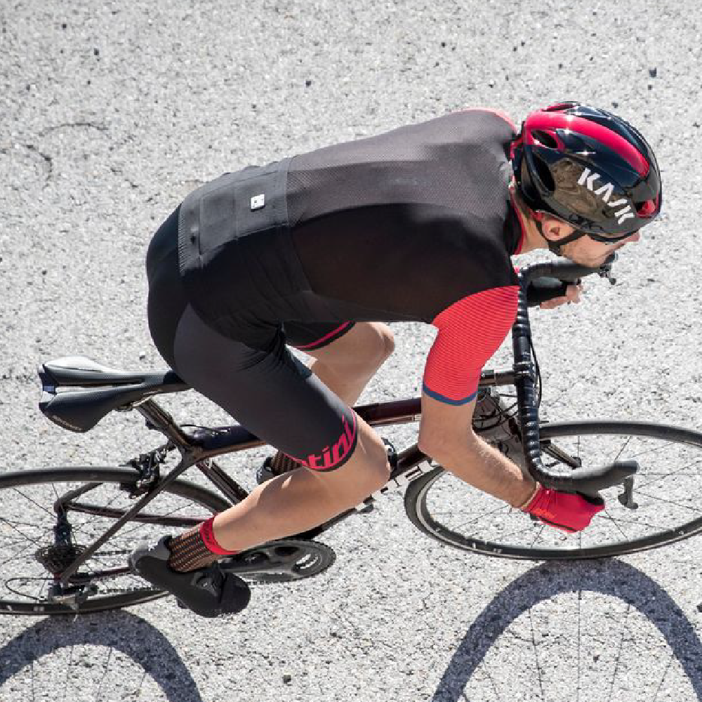 REDUX究極是2018年新推出的系列,除了車衣車褲之外,還有連身服和三鐵服,以及搭配全套的空力襪、手套、小帽等完整的產品線。這個系列最厲害的特色是布料,由Prey「獵物」布料搭配Flow「流動」布料,像紙片一般又薄又帶點脆感,微粗糙的表面有助氣流「脫層」(delamination),以略帶壓縮的力道包覆肌肉,外觀看起來挺拔,實際上又不影響活動。