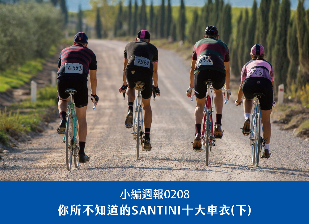 如果您未曾追著Santini的消息走,那您可能還不知道Eroica這個復古騎乘活動。這是從義大利發起,標榜五零年代競賽精神的大型自行車嘉年華,路線是騎在沒有鋪面的「白路」上,器材限制1986年以前的下管撥桿六段變速的鋼管車,車衣也必須穿羊毛衫,並且有嚴格的現場檢錄,以確保活動中拍攝的所有影像都讓人有穿越時光隧道的感覺。2019年全球已經排定11場Eroica活動,Santini身為主要贊助商,穿上L’Eroica系列的羊毛衫羊毛褲,保證不會被主辦單位刁難!