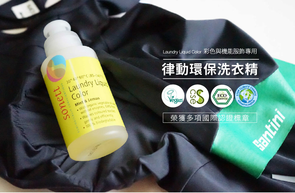 最後,小編要推薦最適合清洗Santini自行車服飾的洗衣精:Sonett律動律動環保洗衣精,這是從德國進口,經過歐盟環保、有機、永續的認證,不使用石化原料,不傷手也不傷衣物,而且重點是洗得乾淨!尤其針對機能布料,洗完幾乎察覺不到洗劑的殘留,仍舊維持性能。而且它不只是專業洗劑,一般衣物一樣適用。除了把衣服「真正的」洗淨外,是不是也要考慮一下排出去的廢水對我們的河川海洋造成的影響呢?商城正在做搭售的活動,1.5L原價660,凡購買車衣褲加購只要399。把握這個機會,體驗環保又有效的洗衣精!
