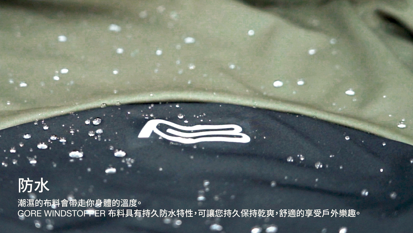 濕布料的傳導溫度速度要比乾衣服快 3 倍,這意味著一旦衣服濕了,身體體溫會更輕易被帶走。WINDSTOPPER防水性則可防止體溫因此流失,依然讓您保持乾爽舒適。