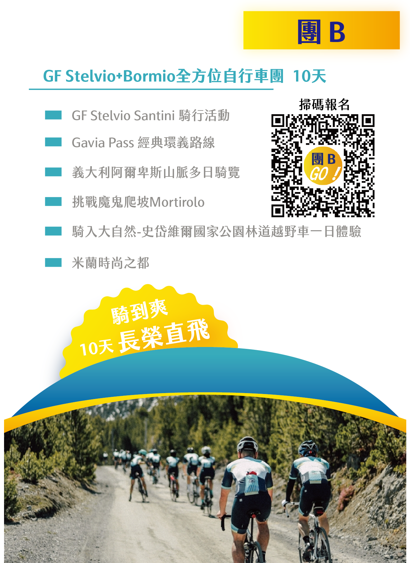 我們細心規劃與勘查,為得是讓每位貴賓車友,都能把握在義大利阿爾卑斯山系的大山大水中騎車的美好時光。一次掌握精華路線,毫不錯過,不留遺憾。