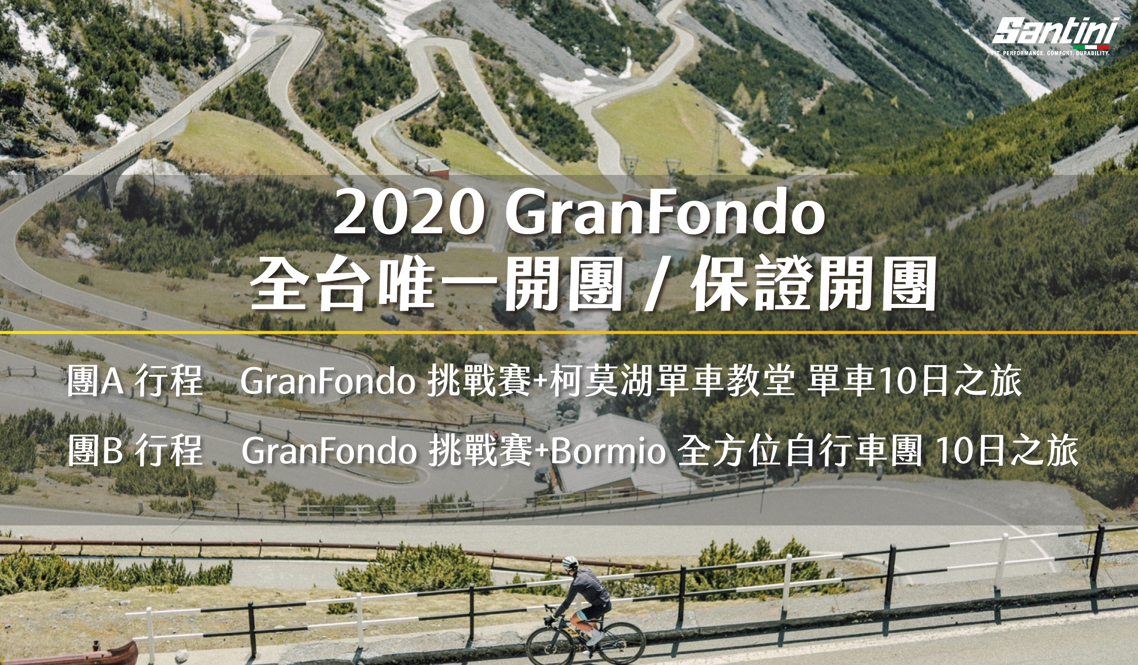 而這一次,一起會挑戰等級為F的 Gran Fondo Stelvio Santini!2020年度將是Santini第三次參與GF Stelvio Santini賽事,請放心與我們同行吧!