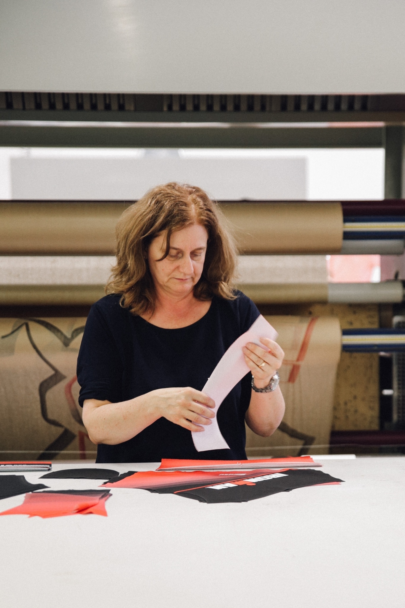 輸出、轉印、剪裁、縫合到品檢,客製化的車服以相同的製程製作,Santini自始自終堅持全義大利製作。而這次的參訪也親身見證了來自全球各地熱愛自行車的車友們,集結各自團隊的創意而創造出來獨一無二的車衣,遺憾的是這次在生產線上恰巧沒有機會看到台灣車友們的客製化車衣的生產。