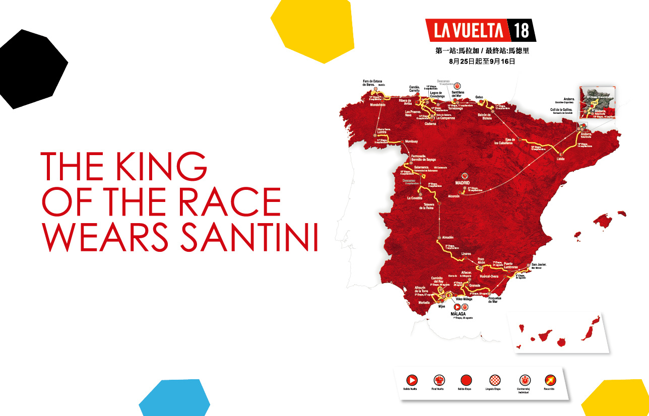 二十一天的比賽,總長3,271公里,五個高山站,二個個人計時賽,六個平地站以及六個丘陵站。一場令人驚異的大型環賽,穿過西班牙絕美的地區。誰會是本屆環西總冠軍紅衫得主?這些車衫頒給累計總成績排名第一的車手。