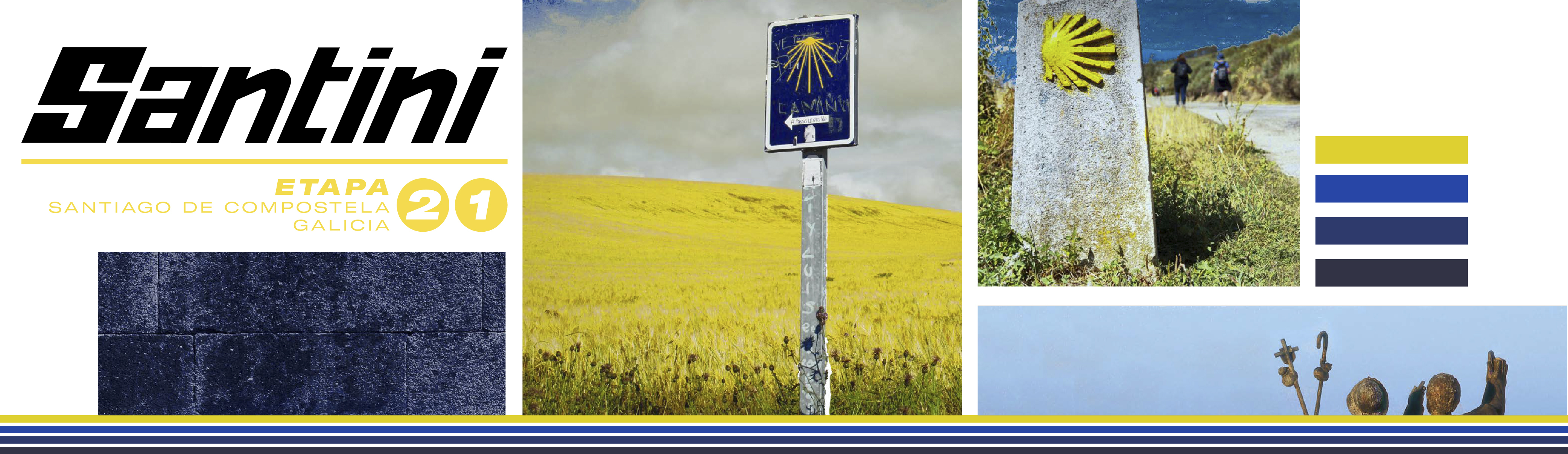 2021環西大賽即將結束,進入到世界聞名的歷史名城聖地亞哥·孔波斯特拉(Santiago de Compostela),進行第二次的個人計時賽。車衣的設計圍繞著象徵性的藍色和黃色,以及扇貝貝殼圖案,這些圖案參照了Camino de Santiago的路線。 此外,我們為紀念本站而製作的貝殼圖案,還微妙地提及了西班牙的禧年和加利西亞的讚助人聖詹姆斯。