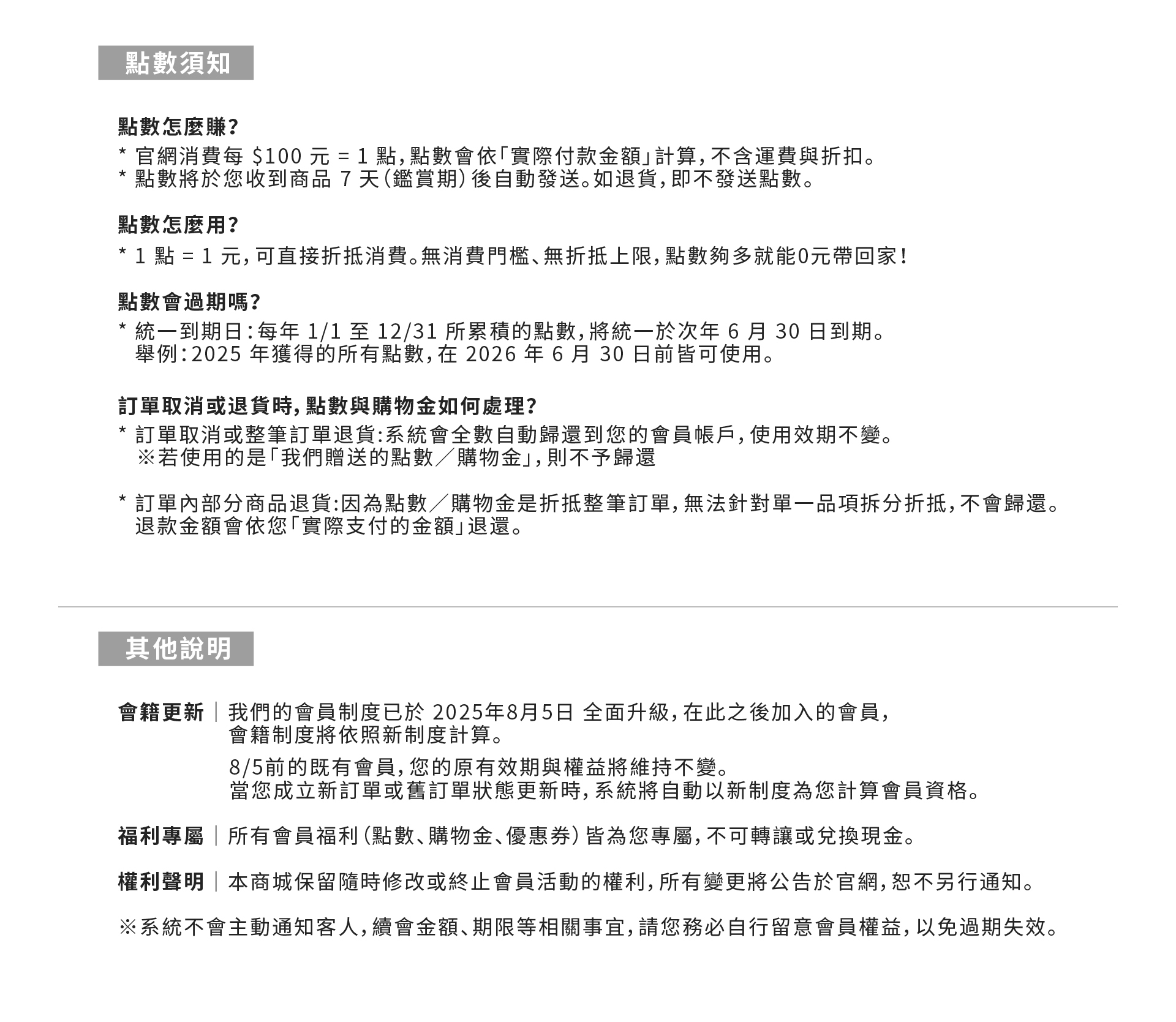 為了讓您買得更開心、回饋拿得更有感,我們在 2025 年 8 月 5 日 全面升級會員制度!