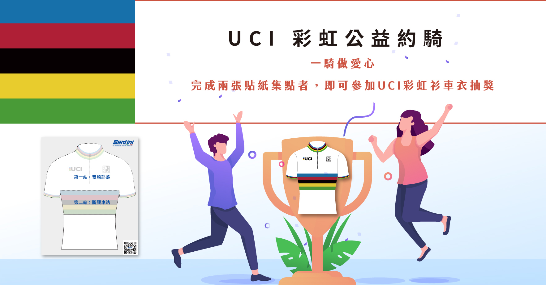 (4) 完成兩張貼紙集點者,即可參加UCI彩虹衫車衣抽獎。