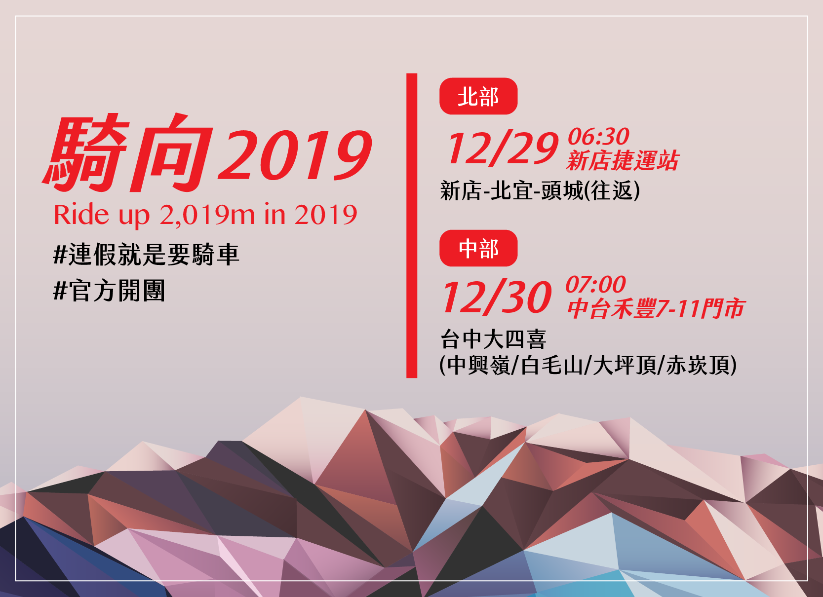 連假四天(12/29~01/01)中間找一天,騎乘爬升超過2,019m即可