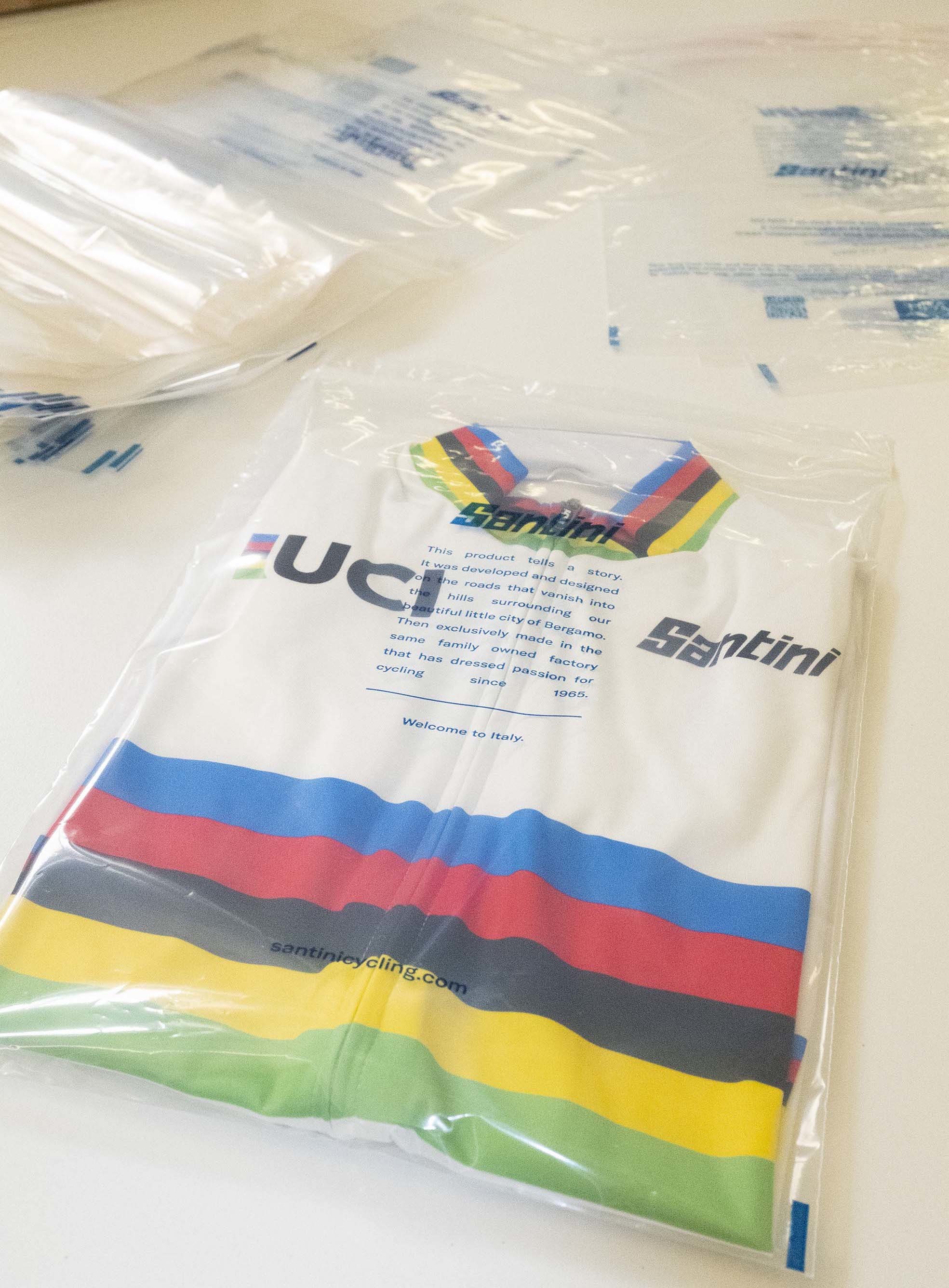 由回收紗線製成的織物,也將用於心年度的世界冠軍彩虹杉:所有UCI世界冠軍的獲勝者也將穿著全新環保車衣登上領獎台的頂端。換句話說,雙贏!
