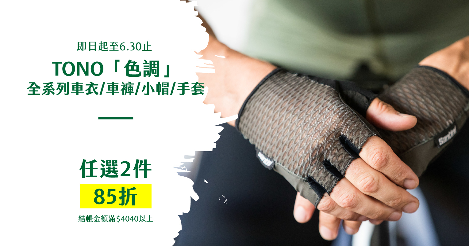 6月18日~6月30日 登山之路抗暑系列 TONO 「色調」全系列品項,任搭兩件商品滿4040 即享85折優惠 (已折扣中商品不參與此次限時活動)