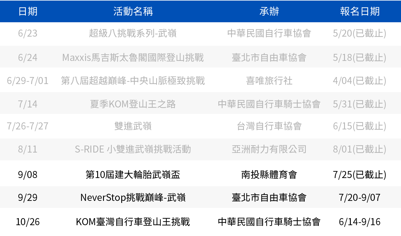 2018 武嶺挑戰賽事一覽表