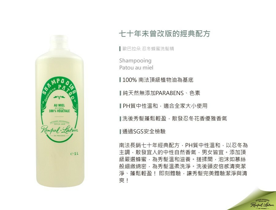 歐巴拉朵 忍冬蜂蜜洗髮精1L