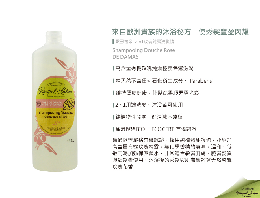 歐巴拉朵 2in1玫瑰純露洗髮沐浴精1L