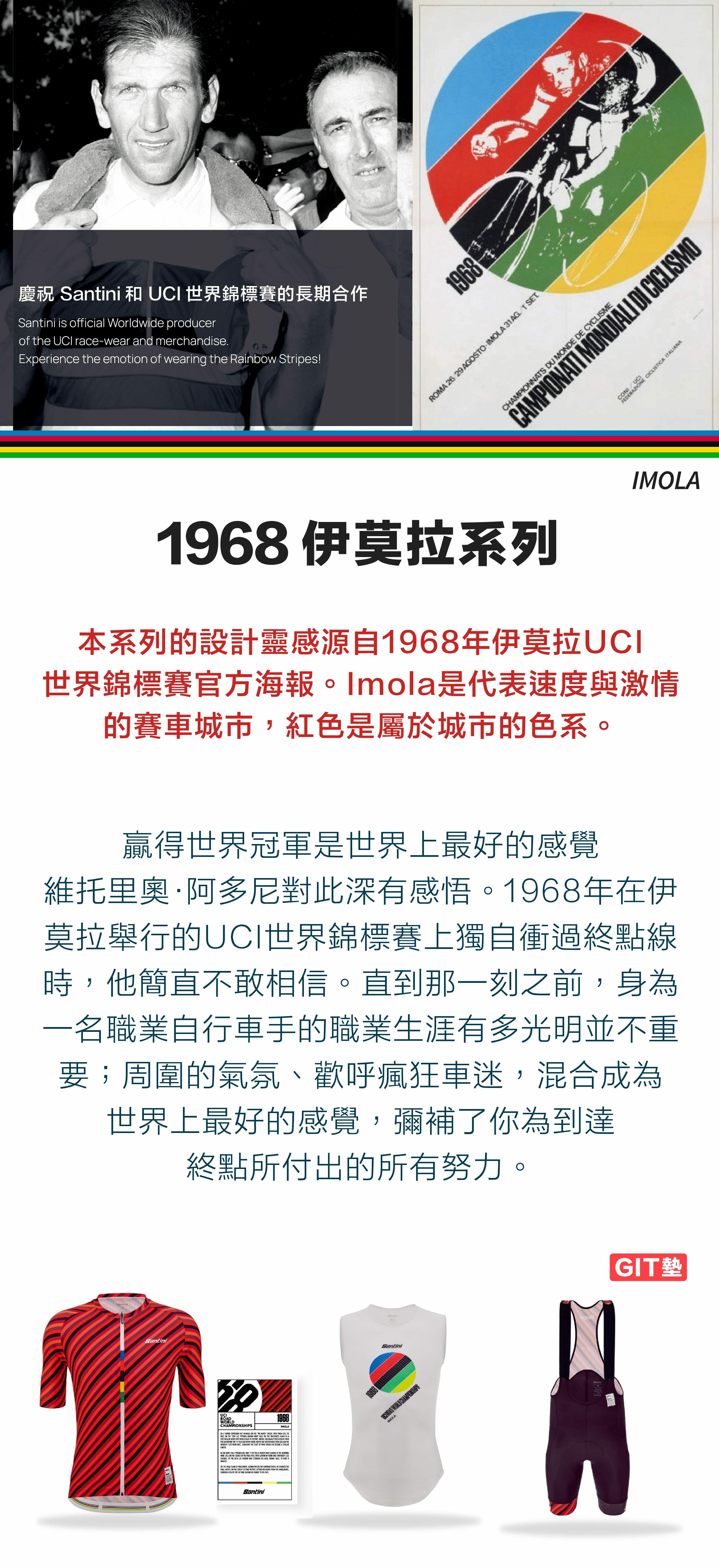 靈感源自 1968 年伊莫拉 UCI 世界錦標賽官方海報。