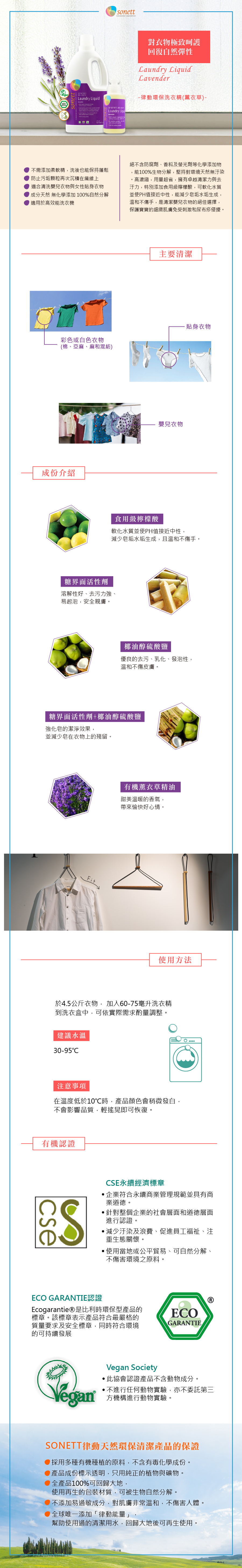-針對產品之認證,確保符合歐盟法規標準,使用可自然分解、不傷害環境之原料。
